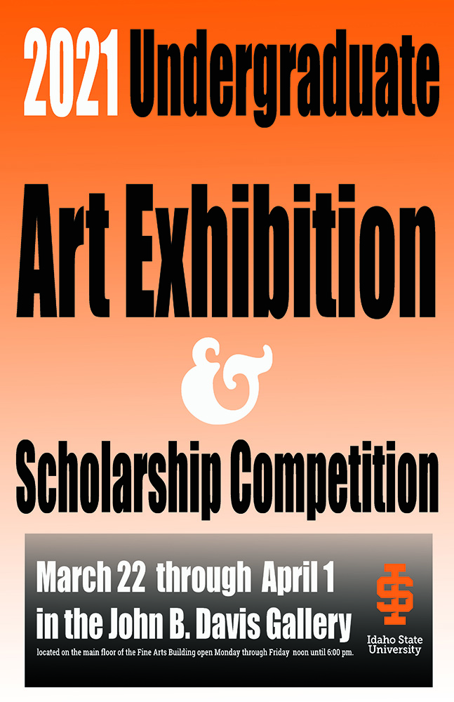 The 2021 Undergraduate Art Exhibition and Scholarship Competition will be on display in the John B. Davis Gallery from March 22nd through April 1st. The John B. Davis Gallery is located on the main floor of the Fine Arts Building. The gallery is open Monday through Friday from noon to 6:00 pm.