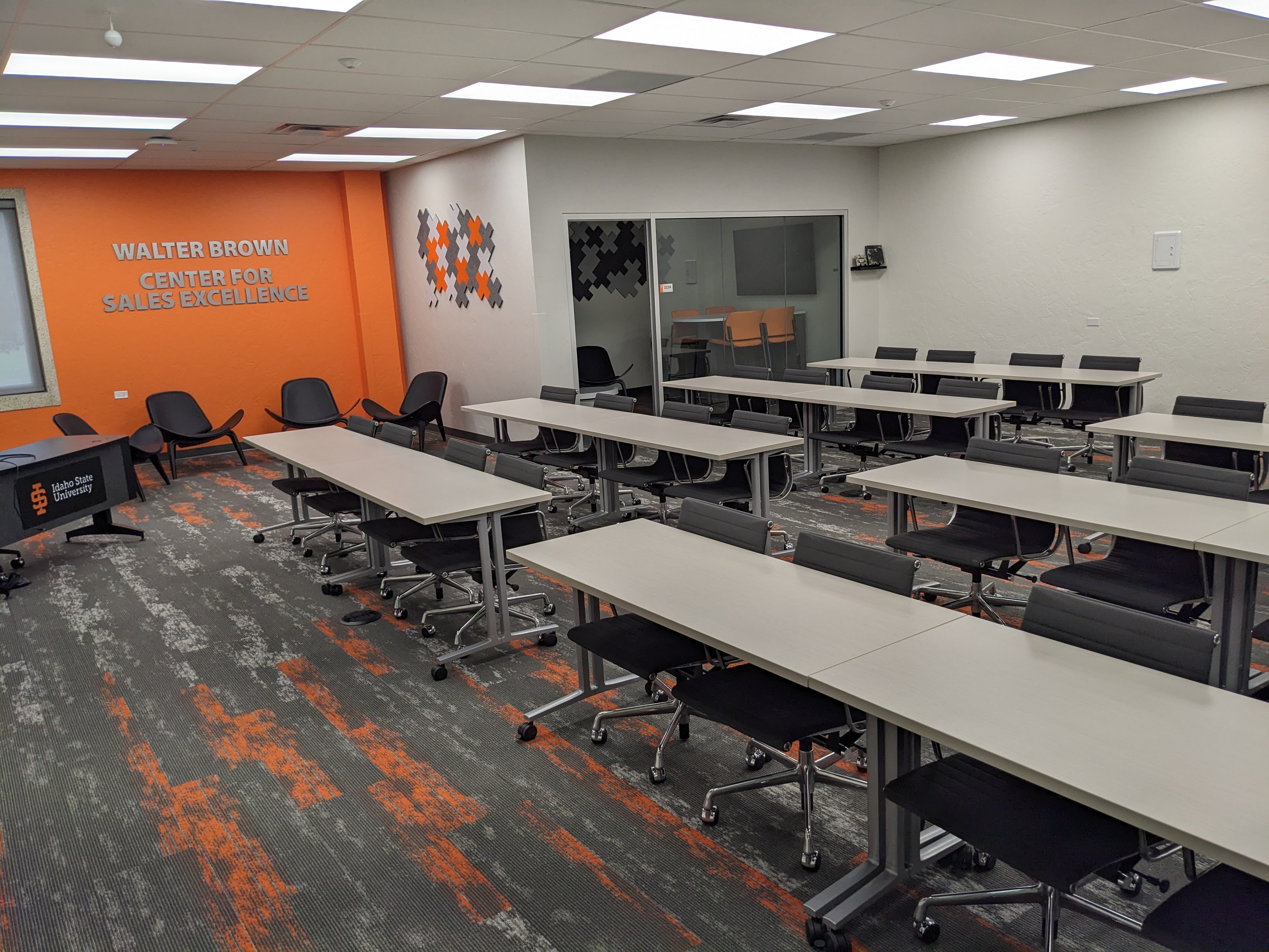 Sales training through the Walter Brown Center for Sales Excellence provides an area to develop sales skills and enhance personal branding. It’s also a place to construct, practice, and train individual and team sales presentations, international sales competitions, interviews and proposals. Within the 28 seat state-of the-art classroom there is a networking area and sales role play recording studio. Our sales program is also backed by the expertise of our Sales Advisory Board, which is composed of impressive sales professionals from around the country and a variety of industries. For more information on sales trainings, or to book a consultation, contact John at johnney@isu.edu.