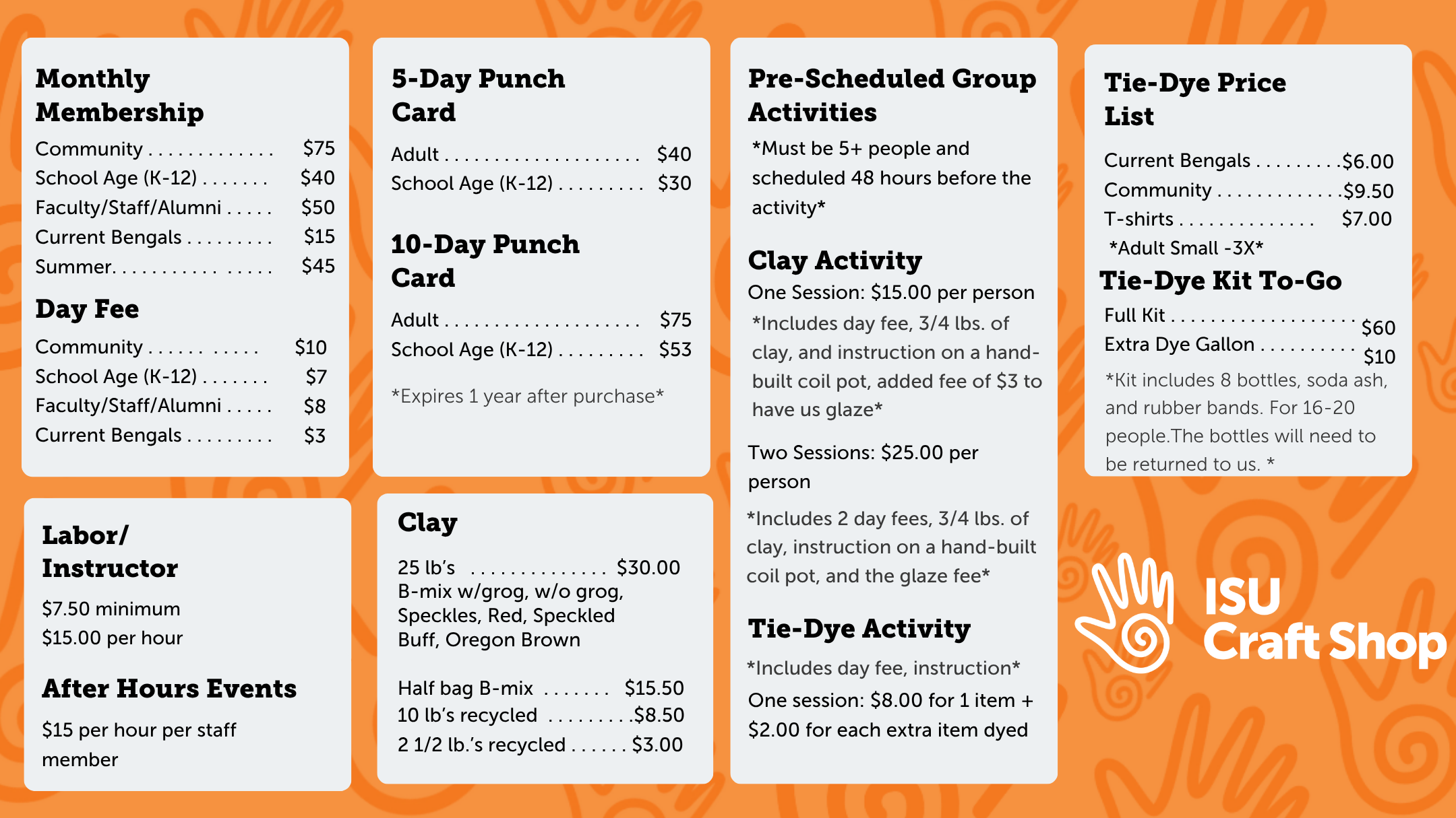 The Craft Shop is located on the first level of the Pond Student Union in room 102.