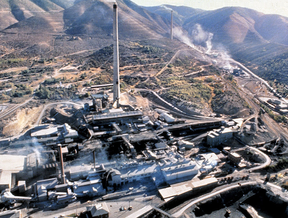 In 1982, the Environmental Protection Agency declared a 21-square-mile area that included the Bunker Hill smelter and zinc plant as a Superfund site. EPA, the state of Idaho, and the mining companies have contributed substantially to remediating the damage from past mining. Over 3,000 homes in the Superfund area have had the dirt in their yards replaced to decrease the problem of fugitive lead. The zinc plant, smelter, and concentrator have been removed as well as the tall smoke stacks (Figure 39). Thousands of cubic yards of contaminated soil from Smelterville flats has been excavated and placed in a repository, and millions of trees have been planted on the hillsides in back of the smelter and zinc plant.