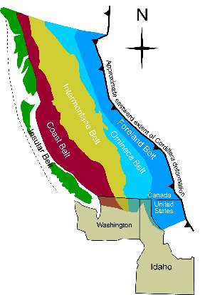 (Above) Northern Idaho contains rocks of both the Omineca crystalline belt and the Foreland fold belt of the Cordilleran orogen.