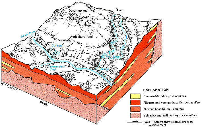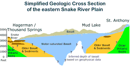 (Right/Below) Aquifer host-rocks, predominantly basalt, are shown. From the U. S. Geological Website, http://pubs.usgs.gov/ha/ha730/ch_h/H-Snake_River1.html