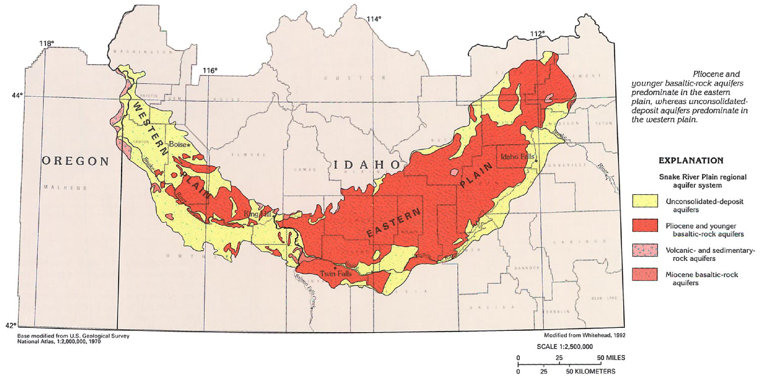 Whitehead, R.L., 1986, Geohydrologic framework of the Snake River Plain , Idaho and eastern Oregon: U.S. Geological Survey Hydrologic Investigations Atlas HA-681, scale 1:1,000,000, 3 sheets.