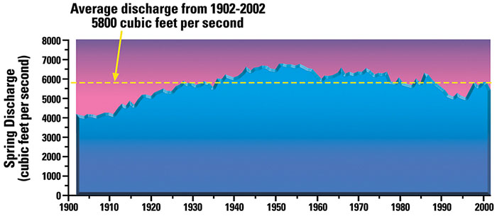 (Above) Graph showing spring discharge levels. From the Idaho Department of Environmental Quality.