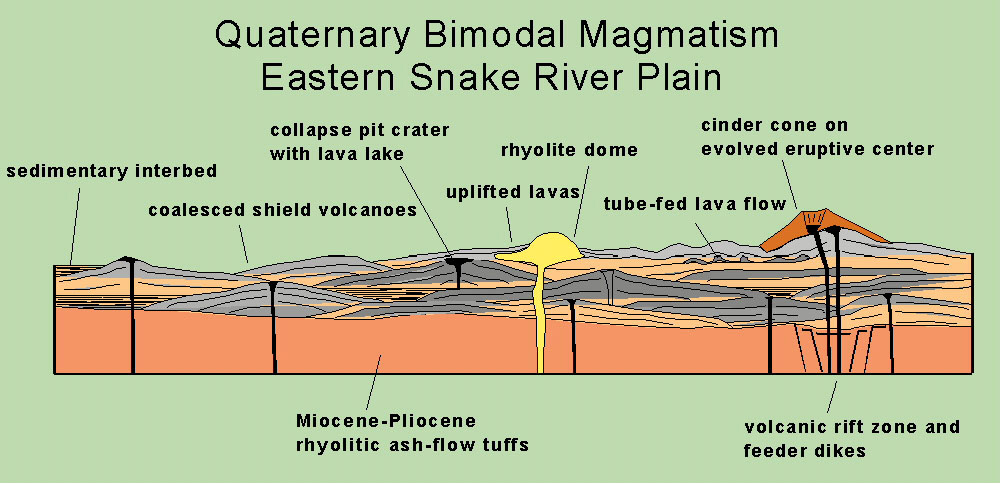 (Above) Typical cross-section through volcanic rocks on the eastern Snake River Plain. Figure from Hughes et al., 1999.