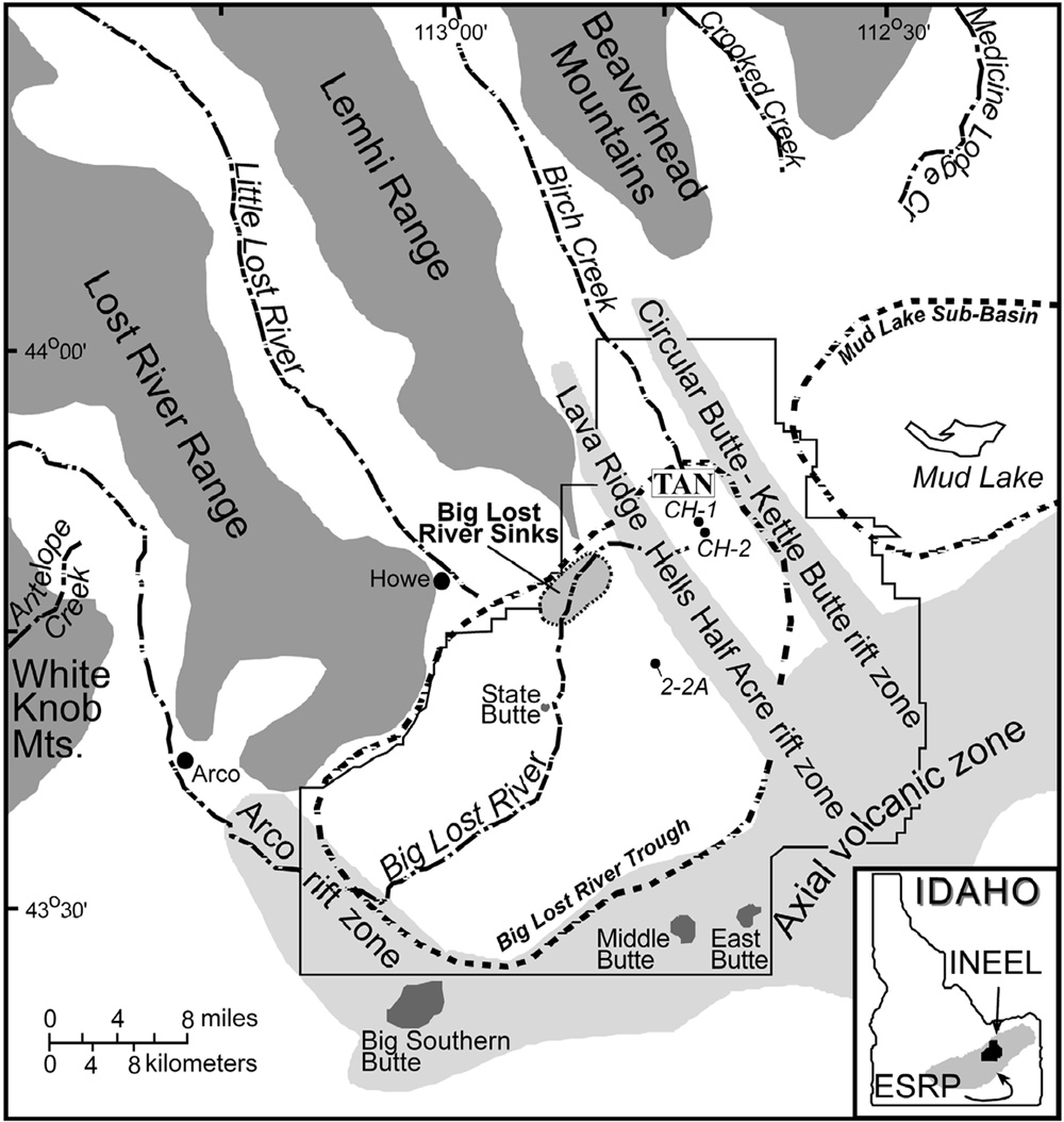 Hackett, W.R. and Smith, R.P., 1992, Quaternary volcanism, tectonics, and sedimentation in the Idaho National Engineering Laboratory area, in Wilson, J.R., ed., Field Guide to Geologic Excursions in Utah and Adjacent areas of Nevada, Idaho, and Wyoming: Utah Geological Survey, Miscellaneous Publication 92-3, p. 1-18.