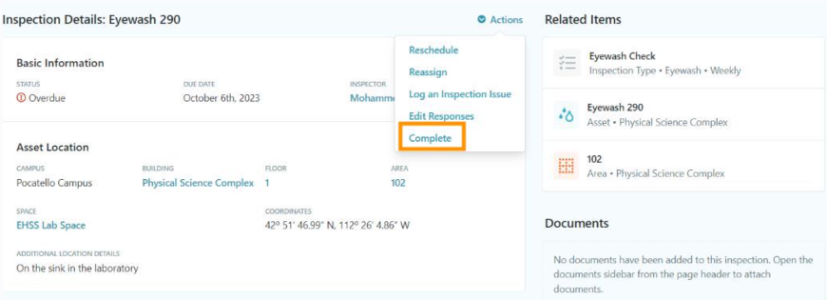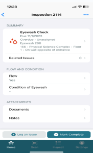 There are two ways to inspect your eyewash or safety shower. You can inspect them through the website or in the app.