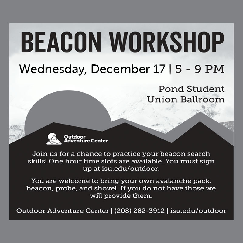 If you have your own pack, beacon, probe, and shovel, please bring them. If you do not, we will have some provided. Please register for one of the times below.