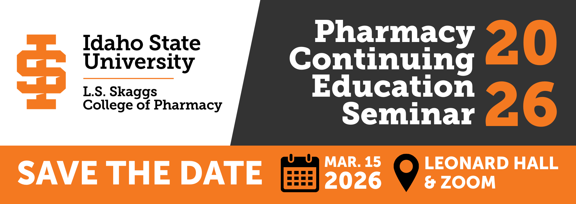 Idaho State University L.S. Skaggs College of Pharmacy is accredited by the Accreditation Council for Pharmacy Education as a provider of continuing pharmacy education. |