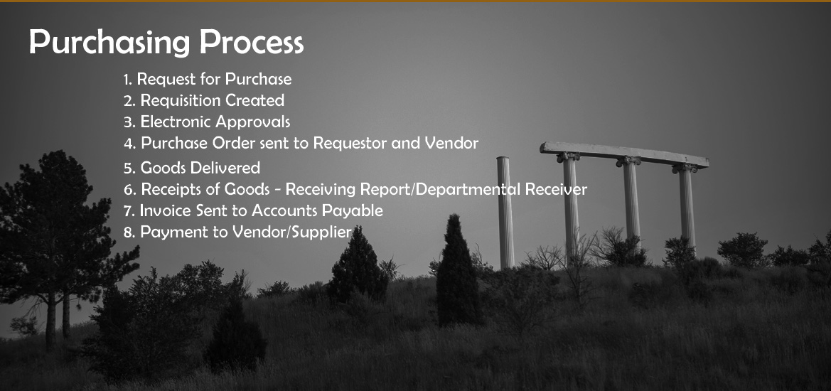 The Purchasing Department is charged with the responsibility of ordering all supplies, equipment, and services necessary for the operation of Idaho State University. It is also a channel through which buyers deal with prospective sellers. The process starts with the user department and ends with the Accounts Payable Department.