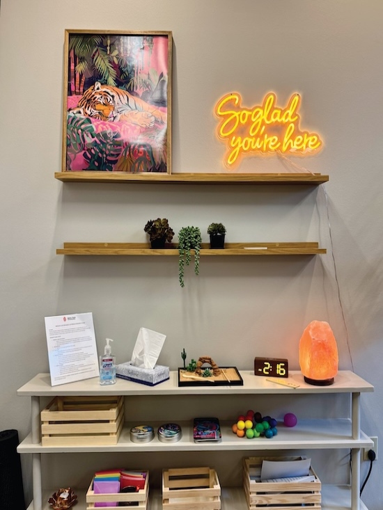 Unwind and recharge in our dedicated Relaxation Lounge, featuring evidence-based stress relief resources. Enjoy massage chairs, a cozy bean bag, coloring supplies, and other tools to help you relax and manage stress effectively. Stimulate your parasympathetic nervous system by staying off your phone while in this area.